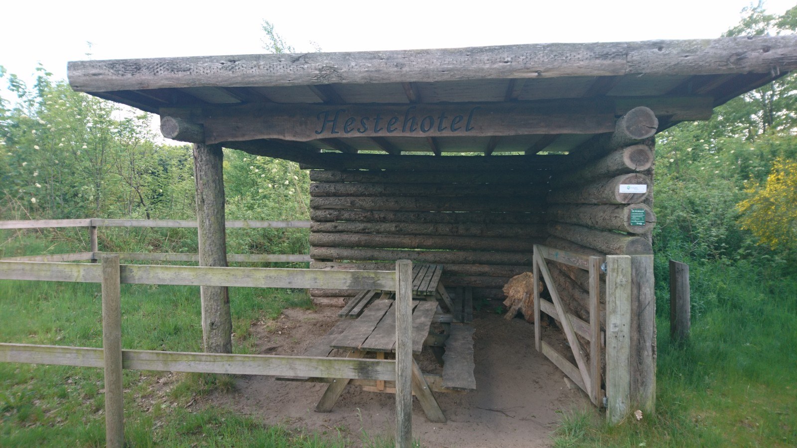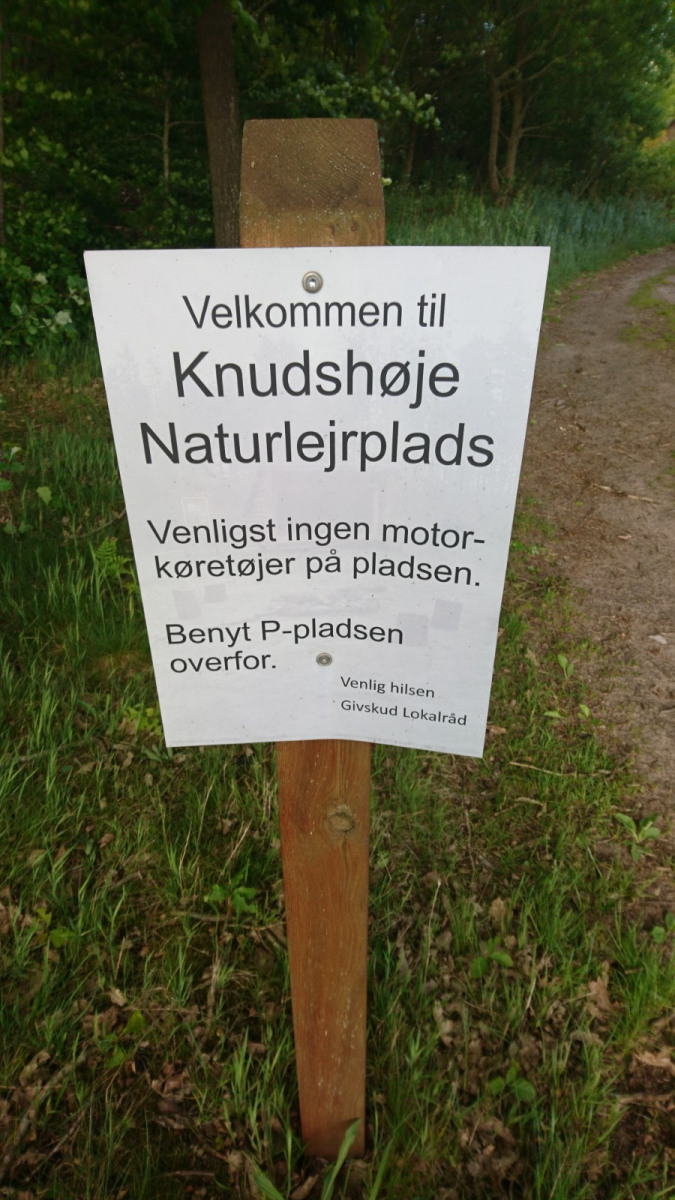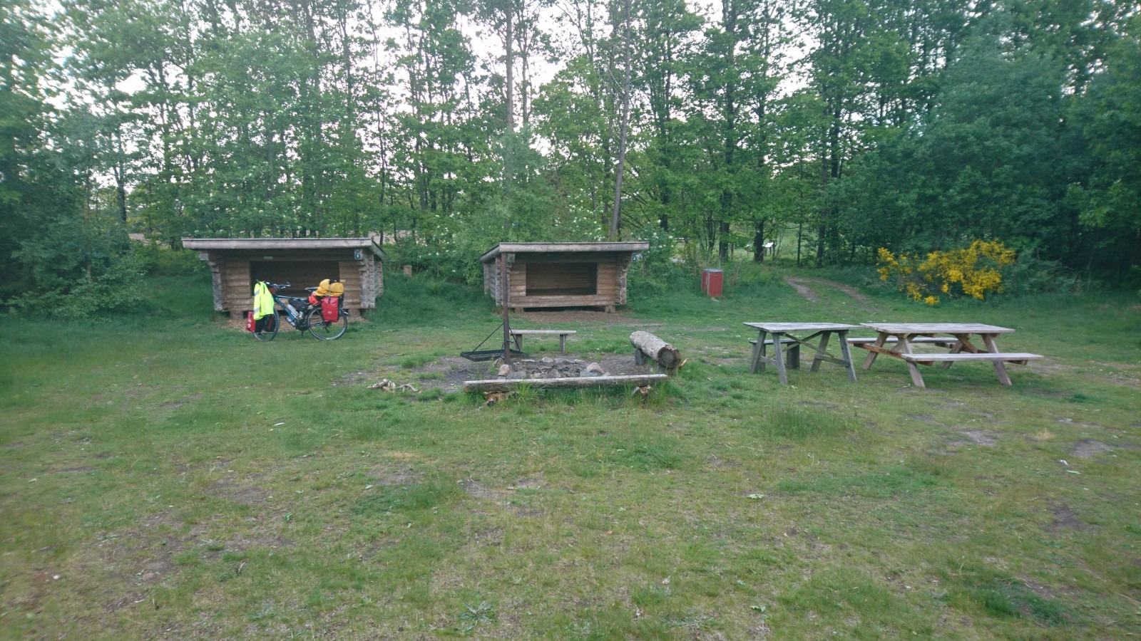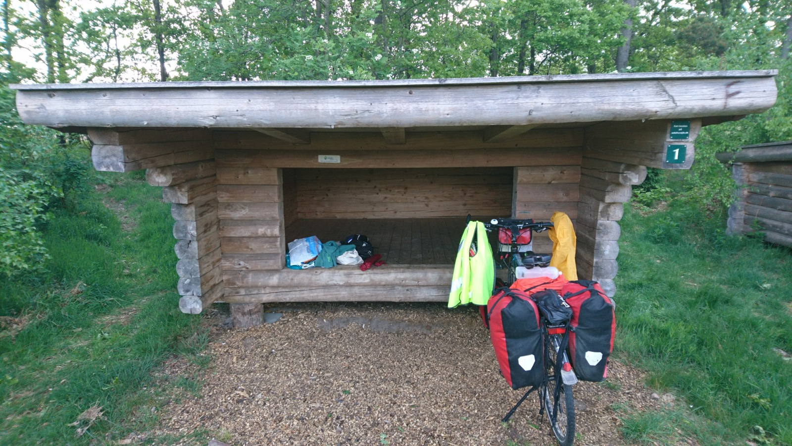 Die Shelter-App zeigt mir ca. 10 km entfernt den Shelter in Givskud. Wasser, Toilette, drei Shelter. Für mich allein (21 Uhr). Kostenlos.