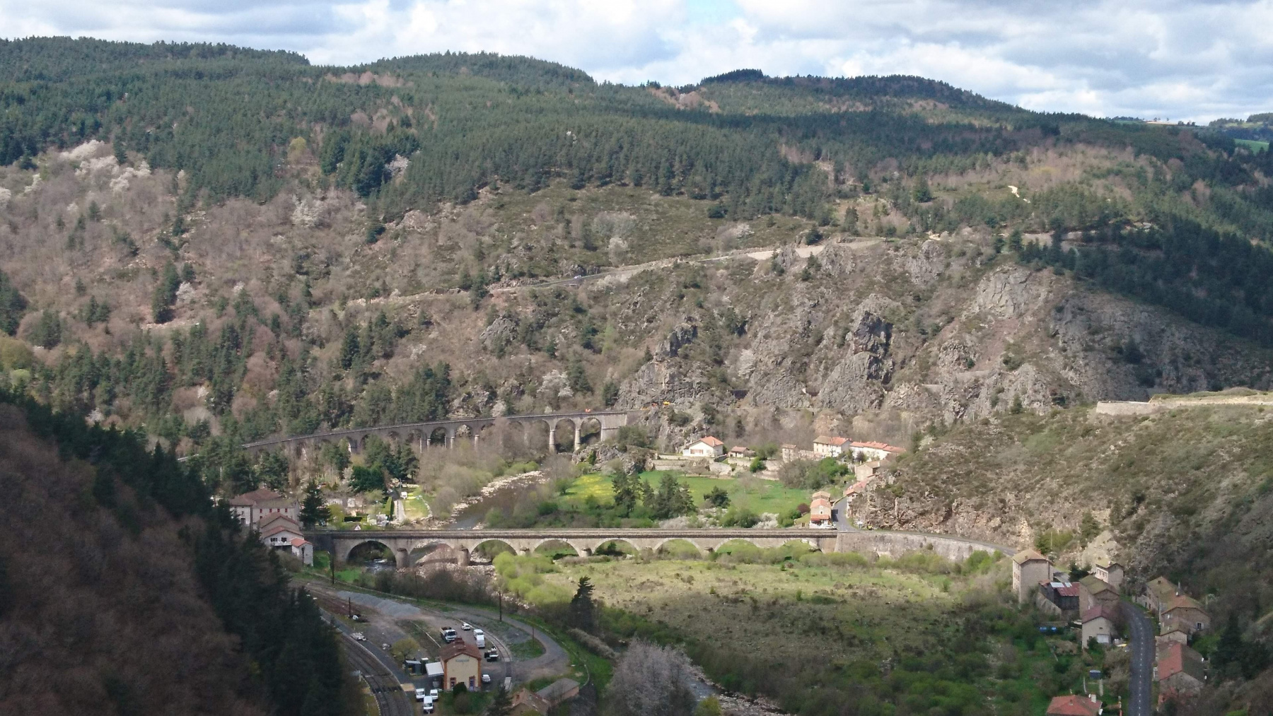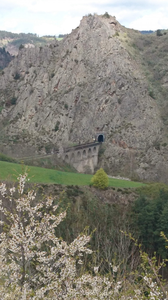 Zunächst auf der Voie Verte, 25 km auf der eh. Bahntrasse von Le Puy bis Brignon. Dann auf kleinen Straßen fast ohne Verkehr nach Les Estrets. Unterwegs treffe ich auf den Weitwanderweg „Stevenson“ (der schottische Schriftsteller, Die Schatzinsel, der mit einem Esel durch das Zentralmassiv gezogen ist).